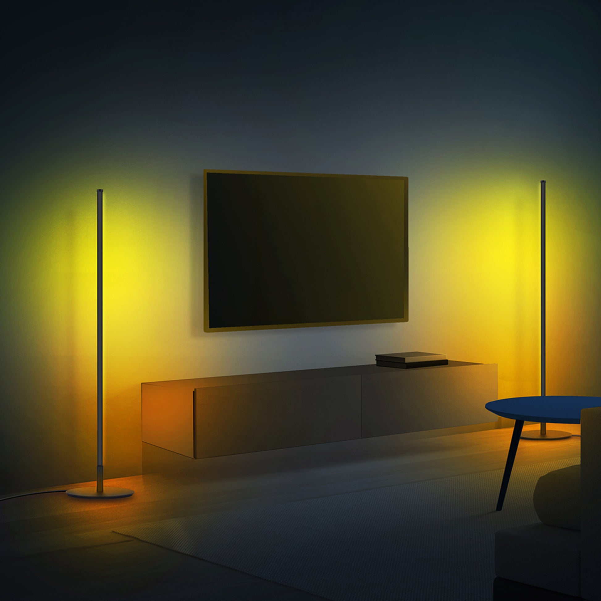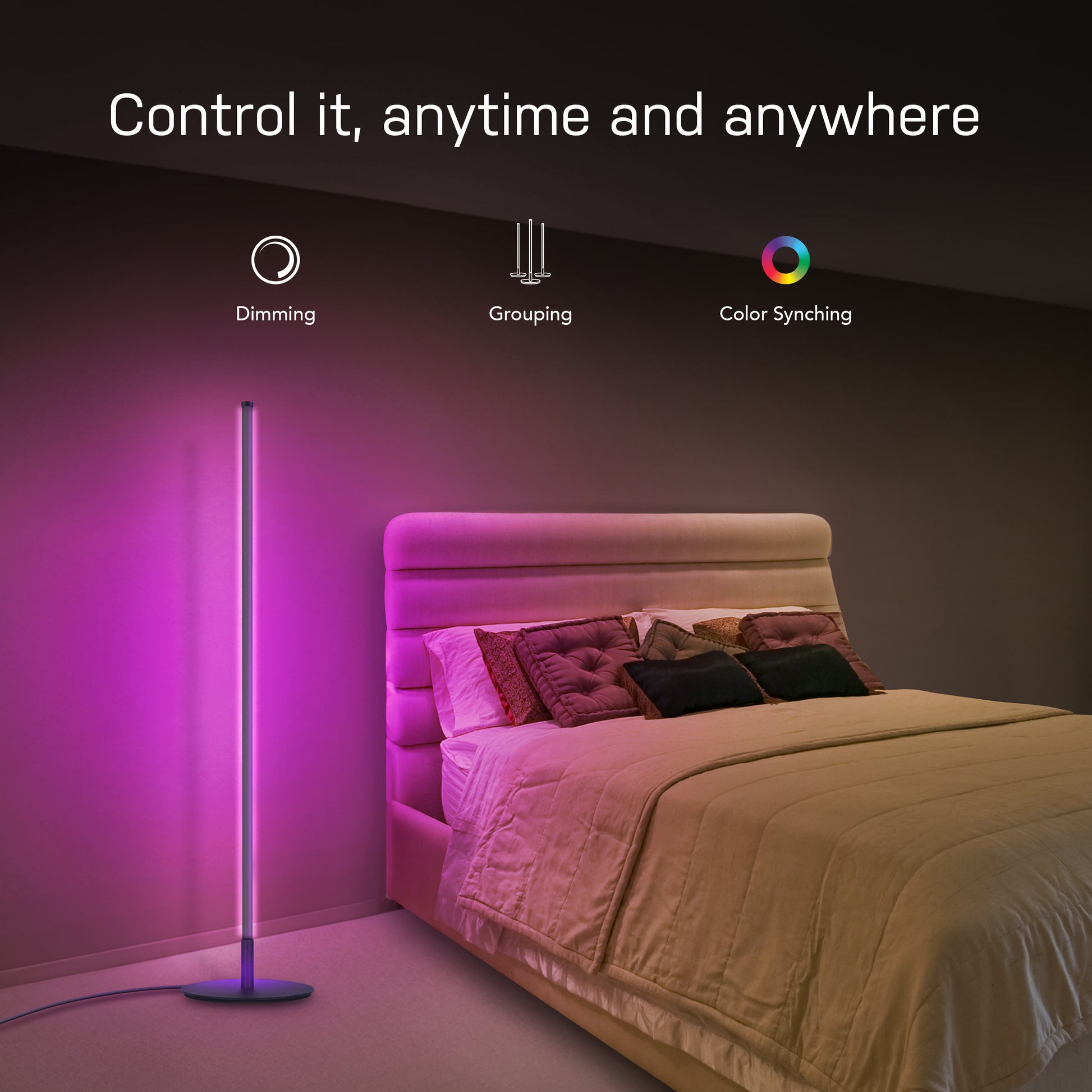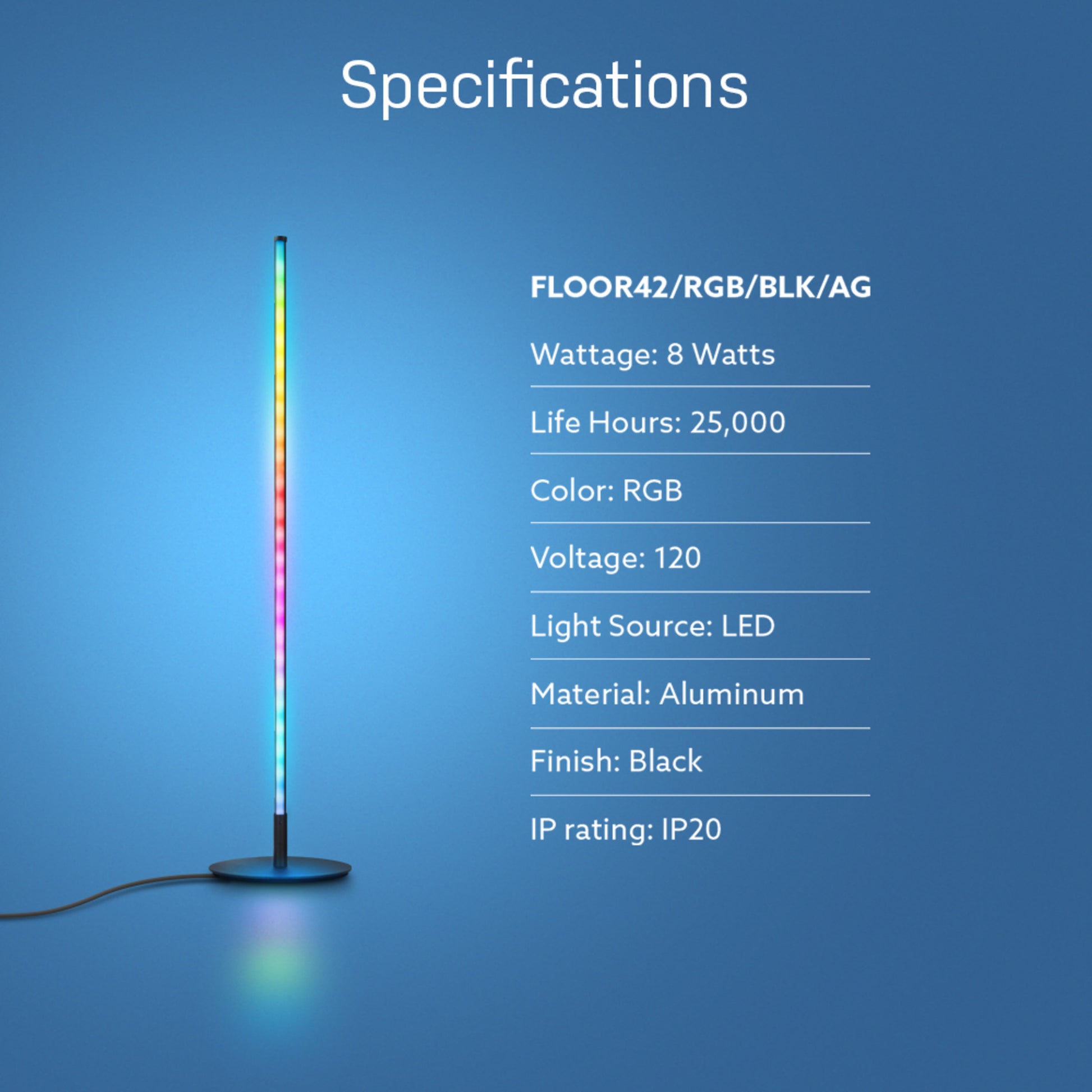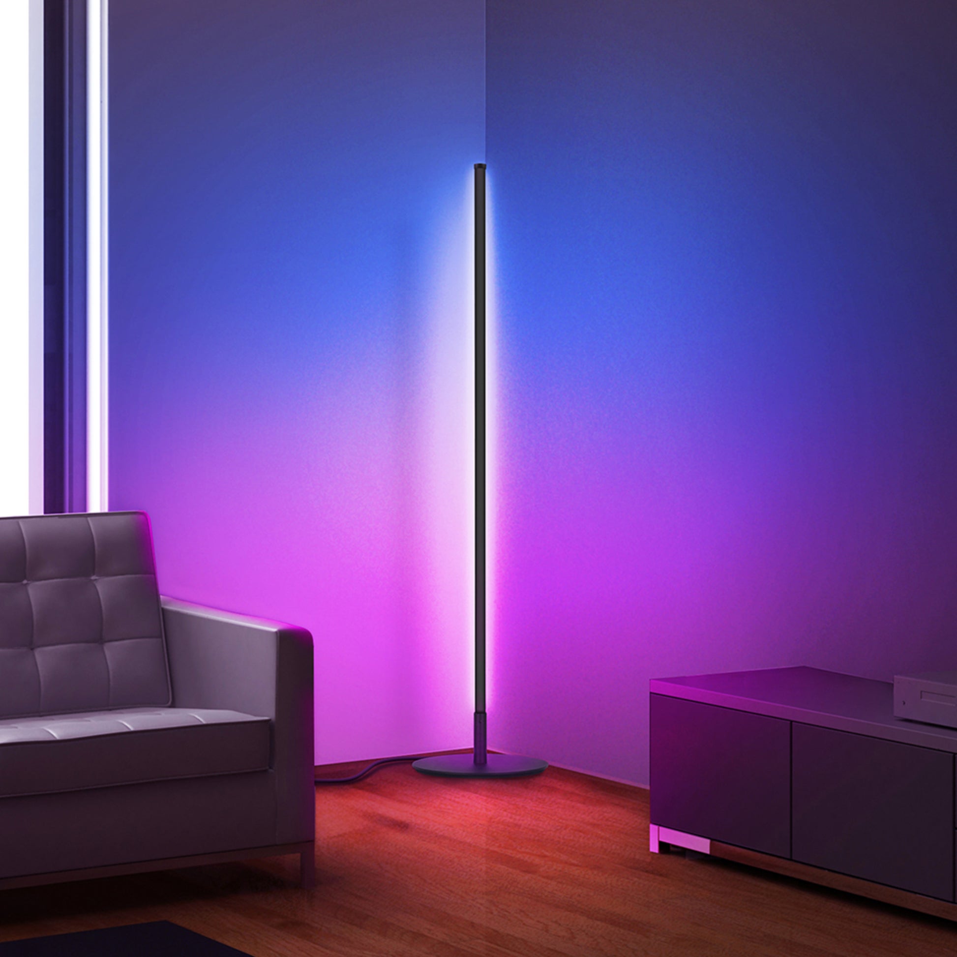 Sync your lights to music and movies with the 42-inch smart floor lamp from Feit Electric. This low-profile light stand features a sleek black aluminum finish and smart connectivity that allows you to select from millions of colors at the touch of a button. Pair it with the Feit Electric mobile app or add Alexa/Google voice assistants to individually control segments of the light with full color spectrum and saturation control. Select preset color scenes like Sunset for orange and yellow hues, Romantic for red hues, and Christmas for red and green hues, plus many more. Or, create your own custom scene for your special occasion or event. It also includes preset effects like Fade, Pulse, Flash, and Chase, with customizable speed and directions. For cool lighting effects, keep your Feit app open and select Music. The FLOOR42/RGB/BLK/AG uses your phone’s microphone to listen for sound and react to the beat of the music. Set up fast effects to get pumped up for video gaming or parties or set a relaxing waterfall scene to unwind. Setup is simple: connect directly to your home Wi-Fi using a 2.4GHz network. If you don’t have a smart device, you can still cycle through preset color scenes by plugging it in and double tapping the ON/OFF button after pairing mode ends and the light stops flashing red. Upgrade your lighting to this truly customizable color floor lamp that lights up your room without taking up a ton of space.