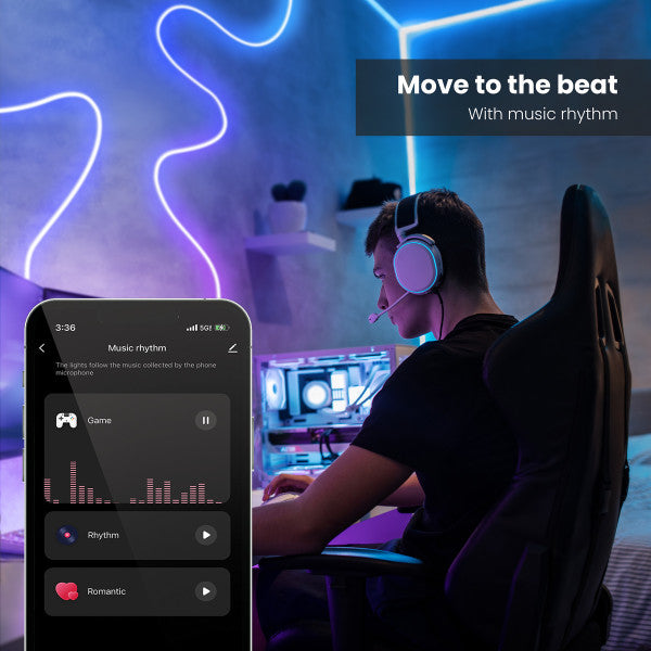 The 10-Foot Smart Neon Flex Light from Feit Electric is here to immerse you in a world of vibrant colors and exciting possibilities. This flexible wall light features state-of-the-art RGBIC technology. Choose from millions of colors and combinations to create an ever-changing light show that captivates the senses. Perfect for gaming, movie nights, parties, and events, the neon flex light adds an electrifying atmosphere to any occasion. Change colors along the length of the light then set them in motion with effects like chasing, flowing, and fading. The music match feature synchronizes your lights with your favorite tunes, turning any room into a pulsating dance floor. Whether you're in relaxation mode or beast mode, this smart flex light has got you covered. Want a quick change of mood? It's got preset scenes to get your party started quickly. Or, create custom scenes and activate them with a voice assistant. Installation is a breeze. Its semi-rigid design offers easier shaping on walls. Create your favorite patterns and shapes with fewer shaping brackets. Set it up in minutes with the free Feit Electric app and a 2.4GHz Wi-Fi connection. Add Alexa or Google Home assistants for voice control. Experience the magic of customizable, dynamic lighting like never before. Upgrade your home or event space today.